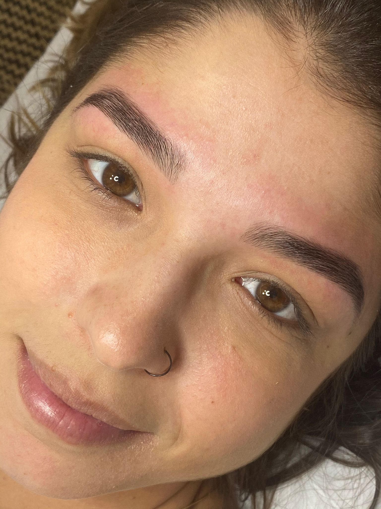 The healing process for microblading typically takes about 4-6 weeks. During the first week, the eyebrows may appear darker and thicker than desired, but this is normal and part of the healing process. Scabbing and flaking may also occur during this time. It’s important to avoid picking at the scabs or scratching the area to prevent any damage to the newly implanted pigment. After the first week, the colour will begin to fade and soften, and the final result will be visible after about 4 weeks. It’s important to follow the aftercare instructions provided by your technician to ensure proper healing and long-lasting results.